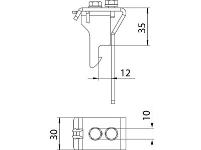 Distanční podpěra k podepření vík kabelových žlabů a žebříků. Výška odstupu 35 mm, ušlechtilá ocel 1.4301.