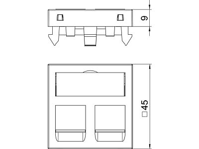 Nosič datové techniky s rovným vývodem a uzavírací krytkou k uchycení dvou modulárních zásuvek datové techniky v provedení RJ45. Upevnění naklapnutím je vhodné pro vodorovnou i svislou montáž do systémového prostředí. Typ RM má speciální modulární úchyt a je dimenzován pro nepřímé upevnění datových modulárních zásuvek v montážním otvoru.