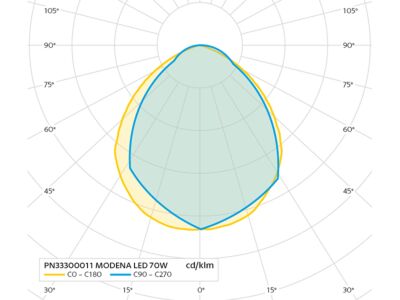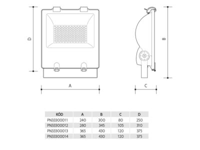 Svítidlo MODENA je dostupné v provedení: 10W, 20W, 30W, 50W, 70W, 100W, 100W asymetr, 150W, 200W, 200W asymetr