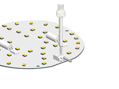 Konektory do desky plošných spojů (PCB konektory). Připojovací napájecí konektory do desky plošných spojů nalézají uplatnění v moderních svítidlech s LED technologií, kde je vyžadována malá světlá výška pro co nejlepší rozptyl světelného zdroje záření. Vyrábí se ve 2 velikostních řadách: