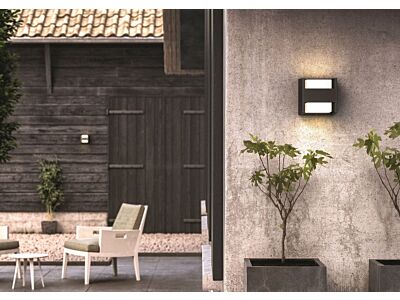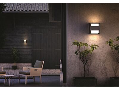 Nástěnné venkovní LED světlo Philips Arbour v antracitově šedé barvě je tvořeno kostkou