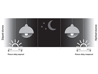 Spínací hodiny s ASTRO programem jsou určeny pro zapínání a vypínání osvětlení nebo jiných zařízení v závislosti na aktuálním datu, času a zeměpisných souřadnic daného místa. Hodiny automaticky vypočítávají časy pro východ a západ slunce v daném místě, jakož i přechod z letního na zimní čas a zpět. Pojem ASTRO ve většině lidí vyvolá pocit, že půjde o složitý algoritmus programování vhodný jen pro specialisty. Pravda je ovšem jiná, pár rychlých kroků v intuitivním menu a hodiny jsou nastavené. Pojďme se na to podívat konkrétně – nejprve je nastavení regionu CZ a prvního dvojčíslí PSČ – tímto krokem jsme nastavili lokalitu a hodiny již dopočítají časy západu a východu slunce. V dalším kroku máme možnost tyto časy sepnutí kontaktu odložit až o 90 min. (respektive posunout dobu sepnutí ještě před západem slunce také až o 90 min.). Spořiví jedinci ocení možnost rozepnutí kontaktu relé během hluboké noci, např. od 01:00 do 03:00. Ono se zdá, že to je zbytečné, ale v součtu dob spínání během celého roku dokáží hodiny ušetřit až desetitisíce korun, a to už je pádný argument. Posledním krokem je nastavení doby rozepnutí kontaktu při východu slunce – i zde máme možnost čas odložit či posunout dopředu. Spínací hodiny PALADIN 170413 easy to předurčuje k široké škále použití, vyjmenujme si alespoň pár z nich: Ovládání nočního venkovního osvětlení jak v soukromém, tak průmyslovém odvětví, ovládání veřejného osvětlení, světelných reklam, osvětlení výloh a mnohé další aplikace, kde potřebujeme zajistit sepnutí v době po západu slunce a rozepnutí kontaktu v době, kdy slunce opět vychází. To vše nezávisle na roční době. Spínací hodiny PALADIN 170413 easy, to je jednoduchá obsluha, rychlé a intuitivní programování a spolehlivý chod. Spínací hodiny lze navíc nastavit i bez připojeného napájení. Pokud budeme provádět jednotné nastavení vícero kusů těchto hodin, práci nám zjednoduší mobilní aplikace pro chytrý telefon s operačním systémem ANDROID. Přenos dat (nastavení) pak probíhá bezdrátovou technologií NFC (Near Field Communication) – stačí přiblížit telefon k displeji, aplikace je zdarma ke stažení na GOOGLE PLAY a je v češtině.