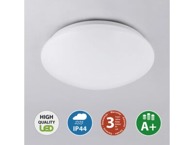 LED stropní a nástěnné svítidlo 18W s nouzovým modulem 1,5 h (ekvivalent 100W úspora až 82%), 230V, IP44, 4000K - neutrální bílá, světelný tok 1530lm (nouz. režim 306lm), vyzařovací úhel 120°, Ra>80, životnost až 30.000h, rozměry ø 360 x 105, materiál plech/plast, nestmívatelné, PF>0,9