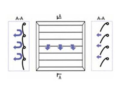 Žaluzie se otevírá automaticky proudem vzduchu po zapnutí ventilátoru.