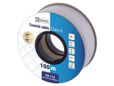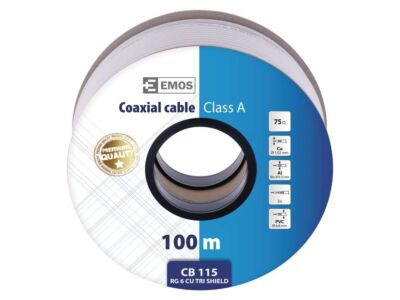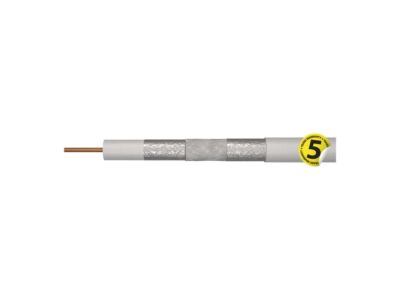 Koaxiální kabel typu RG6 vysoké kvality se středovým vodičem z čisté mědi BC a trojnásobným stíněním TRISHIELD, bílá barva, CLASS A. Kabel je určen pro všechny náročné aplikace přenosů CCTV, TV a SAT signálů. Protože má kabel velmi vysoký útlum stínění (= velmi nízké vyzařování), lze kabelem vést signál o velmi vysoké úrovni, z tohoto důvodu lze tímto kabelem přenášet signály na velké vzdálenosti. Díky kvalitnímu stínění není problém se souběhem více kabelů na velké vzdálenosti.