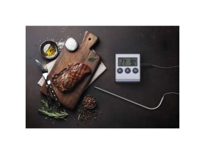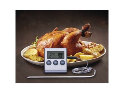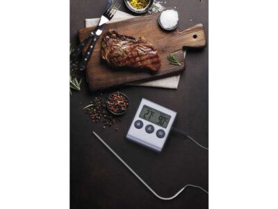Praktický pomocník při přípravě pokrmů, který přesně naměří vnitřní teplotu připraveného masa. Díky tomu dosáhnete dokonalého propečení. 1,25 m dlouhá nerezová teplotní sonda. Snadné ovládání.
