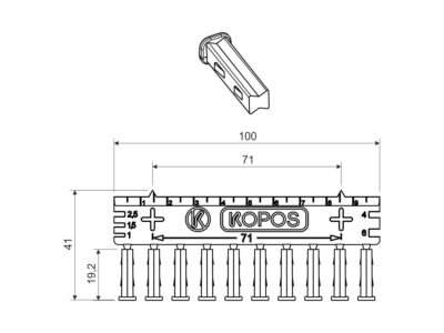 SKLD 2 - SPOJKA KRABIC, konfigurace NB, barva ŽLUTÁ, balení - 10/1120 ks - pro spojování krabic KUL 68-45/LD a KPRL 68-70/LD , přiložené pravítko slouží k naměření rozteče 71 mm a zároveň je možné ho použít jako měrku k identifikaci průřezů kabelů, 1 kus obsahuje plato 10 ks spojek