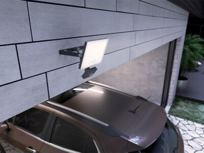 Moderní venkovní LED reflektor s PIR senzorem.