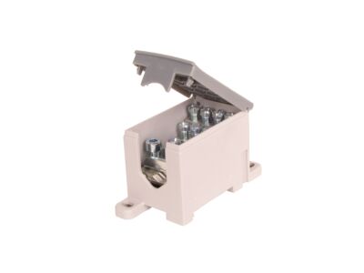 Blok pro rozdělení fází PVB 160-12, 1pólový, pro AL/CU vodiče, jmenovitý proud 160A, jmenovité napětí 1000V, barva šedá, montáž na DIN lištu / PANEL, krytí IP20, vstup 1x95mm2, výstup 12x16mm2. Rozměry ŠxVxH: 40x48x85 mm.