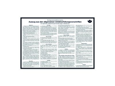 Bezpečnostní upozornění "Výňatek z obecných předpisů o prevenci úrazů". Materiál: plast. Formát: 420x297 mm