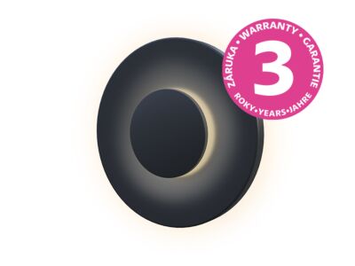 Zahradní nástěnné LED svítidlo s kruhovým designem, které svými paprsky vytváří příjemnou světelnou mlhu ve tvaru kruhu v jeho okolí.