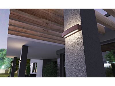 Nástěnné LED svítidlo s hranatým designem, které svými paprsky vytváří příjemnou světelnou mlhu současně směrem k zemi i vzhůru.