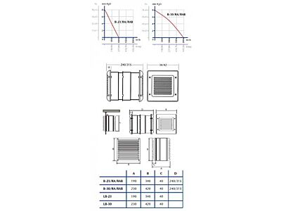 Ventilační jednotka na zeď či do okna, pr. 230 mm, 825 m³/h (odtah) / 530 m³/h (sání), 49 dB(A), IPX4, elektricky ovládaná žaluzie.