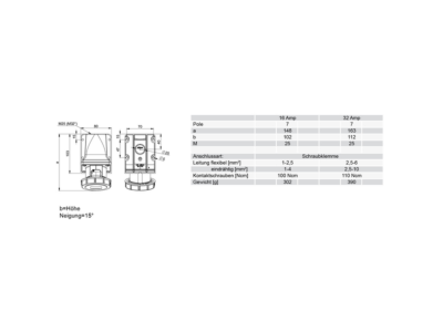 zásuvka nástěnná 7-pólová, 16A / 110V, 4h, IP67, niklované kontakty