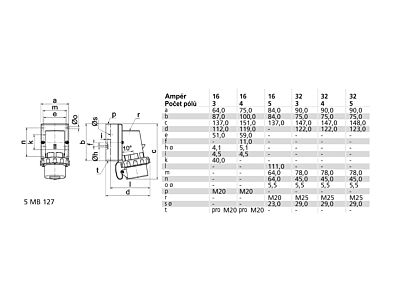 - Napětí podle ČSN EN 60309-2 230 V (50 Hz 60) modrá