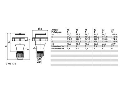 - Napětí podle ČSN EN 60309-2 230 V (50 Hz 60) modrá