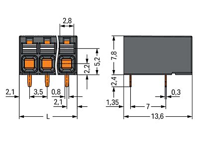 Svorka na desky plošných spojů THR; Tlačítko; 1,5 mm²; Rozteč 3,5 mm; 3pól.; Push-in CAGE CLAMP®; Černá