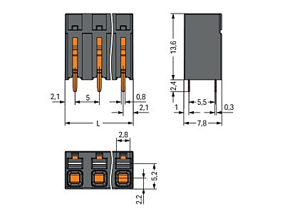 Svorka na desky plošných spojů THR; Tlačítko; 1,5 mm²; Rozteč 5 mm; 8pól.; Push-in CAGE CLAMP®; Černá