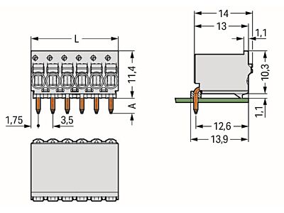 1vodičový konektor (zásuvka) THT, úhlový; Tlačítko; Push-in CAGE CLAMP®; 1,5 mm²; Rozteč 3,5 mm; 3pól.; Pájecí kontakt Ø 1 mm; Manipulační destička; Přímý potisk; 1,50 mm²; Světle šedá