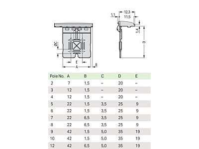 Manipulační destička s odjišťovacím šoupátkem; Pro pružinové svorkovnice a konektory s pájecími piny; Dvoudílné; Rozteč 5 mm; 2pól.; Světle šedá