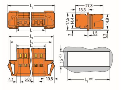 WAGO Konektor 231-643/114-000 1vodičový s pájecími piny CAGE CLAMP® 2,5 mm², oranžová