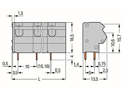 2vodičová svorka na desky plošných spojů; 0,75 mm²; Rozteč 10/10,16 mm; 8pól.; PUSH WIRE®; Šedá
