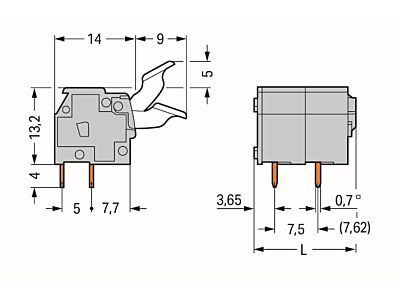 Svorka na desky plošných spojů; Ovládací tlačítko; 2,5 mm²; Rozteč 7,5/7,62 mm; 10pól.; CAGE CLAMP®; Možnost můstkového propojení; Šedá