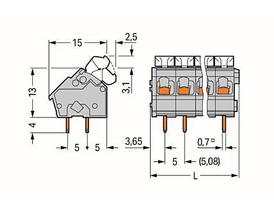 - Typ připojení vodičů Pružinová svorka