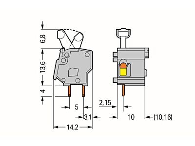 WAGO Svorka 257-762 s možností řadového připojení na DPS, tlačítko, 2,5 mm², šedá