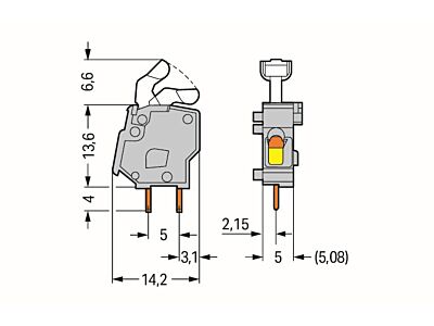 Svorka s možností řad. připojení na DPS; Tlačítko; 2,5 mm²; Rozteč 5/5,08 mm; 1pól.; CAGE CLAMP®; Možnost můstkového propojení; Světle šedá