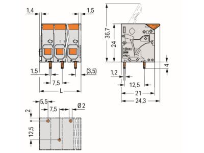 Svorka na desky plošných spojů; Páčka; 6 mm²; Rozteč 7,5 mm; 6pól.; Push-in CAGE CLAMP®; 6,00 mm²; Šedá