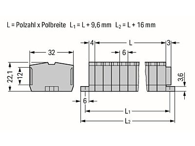 2vodičová svorkovnice; Bez tlačítka; S upevňovacími přírubami; 8pól.; Pro šroubové a podobné druhy upevnění; Upevňovací otvor Ø 3,2 mm; 2,5 mm²; CAGE CLAMP®; Šedá