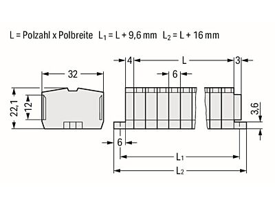 2vodičová svorkovnice; Bez tlačítka; Vhodná pro aplikace Ex e II; S upevňovacími přírubami; 9pól.; Pro šroubové a podobné druhy upevnění; Upevňovací otvor Ø 3,2 mm; 2,5 mm²; CAGE CLAMP®; 2,50 mm²; Světle šedá