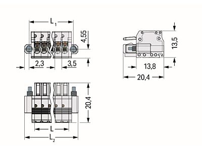 1vodičová pružinová svorkovnice; Tlačítko; Push-in CAGE CLAMP®; 1,5 mm²; Rozteč 3,5 mm; 20pól.; 100% ochrana proti chybnému zapojení; Šroubová přírubou; 1,50 mm²; Světle šedá
