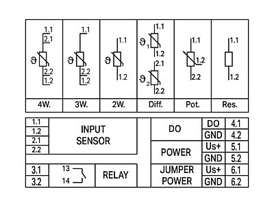 Úrovňové spínače; Senzory RTD; 1 spínací kontakt; Binární výstup; Konfigurování pomocí softwaru; Napájecí napětí: 24 V DC; Šířka modulu 12,5 mm; Drážní aplikace