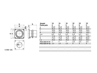 rozměr příruby: svisle 85 mm, vodorovně 85 mm