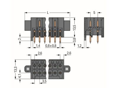 Konektor s pájecími piny THT, 2řadý; Pájecí kontakt 0,8 × 0,8 mm; Rovné provedení; 100% ochrana proti chybnému zapojení; S orientační špičkou; Závitová příruba; Rozteč 3,5 mm; 6pól.; Černá