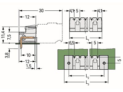 WAGO Konektor 721-436/001-000 s pájecími piny THT Pájecí kontakt 1,0 × 1,0 mm Úhlové provedení, šedá