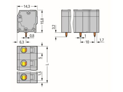WAGO Svorka 739-3208 na desky plošných spojů 2,5 mm² Rozteč 10 mm, šedá