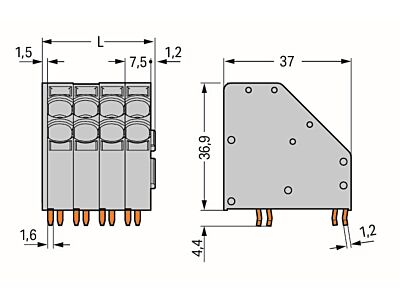 2vodičová svorka na desky plošných spojů; 10 mm²; Rozteč 7,5 mm; 8pól.; Push-in CAGE CLAMP®; Světle šedá