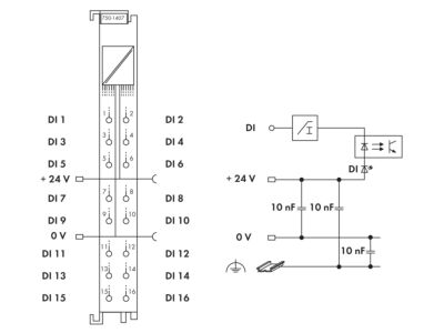16kanálový binární vstup; DC 24 V; 3 ms; Spínání k minusu