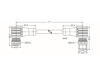 WAGO Kabel 756-1306/060-030 systémové sběrnice Zásuvka M12B úhlová Zástrčka M12B úhlová, žlutá 3m