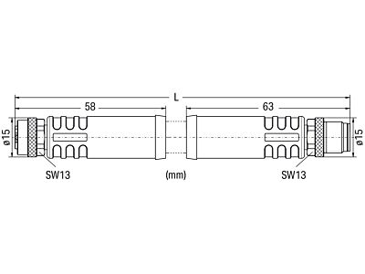 Napájecí kabel; Zásuvka M12L; přímá; Zástrčka M12L; přímá; 5pól.; Délka 1 m