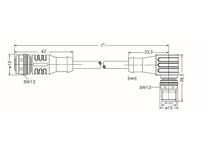 Kabel pro senzor / akční člen; Zásuvka M12A; přímá; Zástrčka M12A; úhlová; 5pól.; Délka 2 m