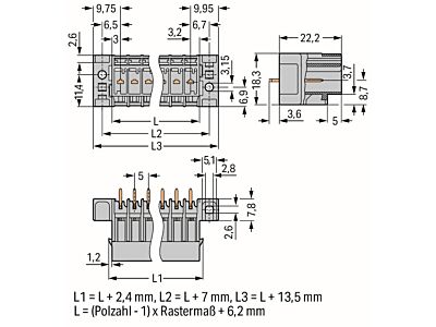 WAGO Konektor 769-642/007-000 s pájecími piny THT Pájecí kontakt 1,0 × 1,0 mm Rovné provedení, šedá
