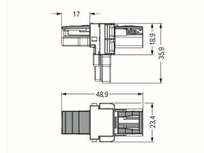 T-rozdělovač; 2pól.; Kód. B; 1 vstup; 2 výstupy; 2 blokovací západky; Šedá