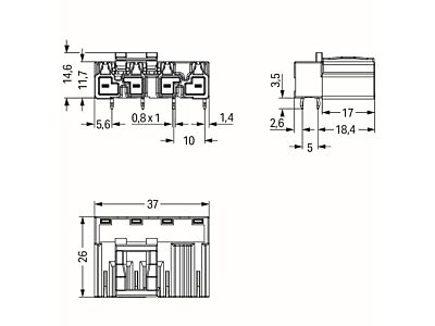 - Úhel PCB / Kontakt 0° / 180° (horizontální)