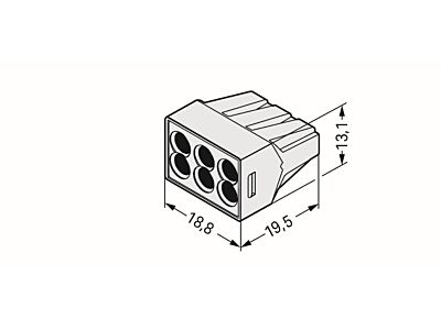 Instalační svorka PUSH WIRE®; PRO PLNÉ A VÍCEDRÁTOVÉ VODIČE; Pro aplikace Ex; Max. 2,5 mm²; 6 vodičů; Barva pouzdra světle šedá; Barva krytu světle šedá; Max. teplota okolního prostředí 60 °C; 2,50 mm²; Světle šedá