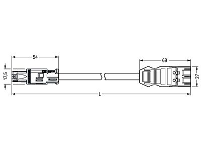 Konfekcionované přechodové vedení; B2ca; Zásuvka/zástrčka MIDI; 3pól.; Kód. A; 4m; 2,50 mm²; Černá