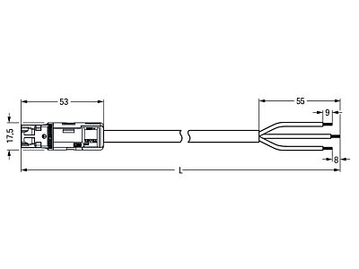 Konfekcionovaný s připojovacím kabelem; B2ca; Zástrčka / otevřený konec; 3pól.; Kód. A; H05Z1Z1-F 3G 2,5 mm²; 2 m; 2,50 mm²; Černá